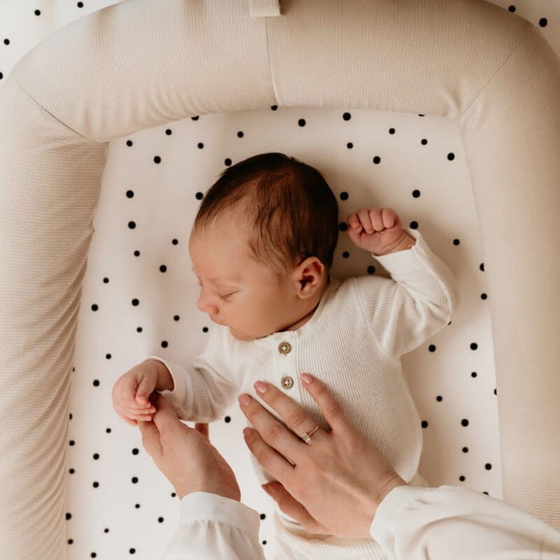 Wyjątkowo praktyczne gniazdko niemowlęce 3 w 1 łączy w sobie najważniejsze potrzeby maluszka: bezpieczne miejsce do snu, spokojne wyciszenie oraz pełen komfort i zabawę sensoryczną