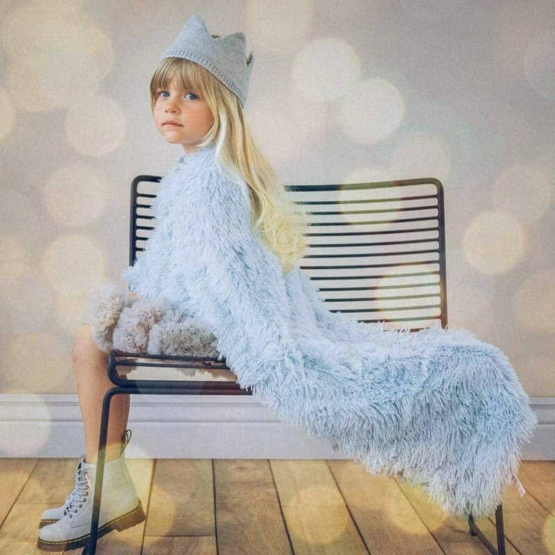 Luksusowy miękki kocyk futerkowy w kolorze niebieskim jest miękki i puszysty. Idealnie sprawdzi się jako stylowy prezent na baby shower, urodziny lub inną okazję.