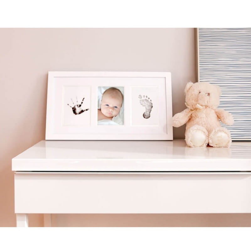 Uwiecznij, malutkie dłonie i stopy swojego maluszka nim zdąży wyrosnąć! Stwórz spersonalizowaną pamiątkę, która zawsze będzie przypominała pierwsze miesiące Twojego dziecka. Biała, drewniana ramka stanie się bardzo osobistą dekoracją Twojego domu.