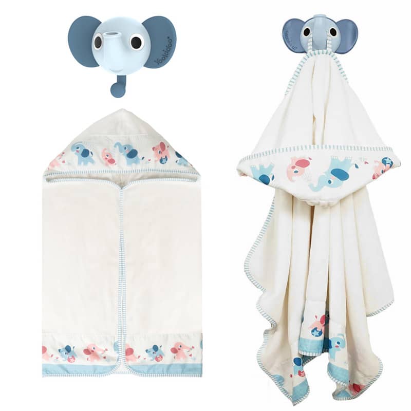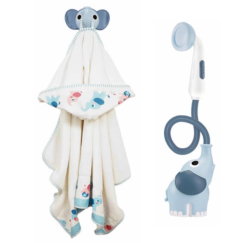 - Zawartość: słonik z prysznicem, ręcznik z kapturem, wieszak, zestaw montażowy
