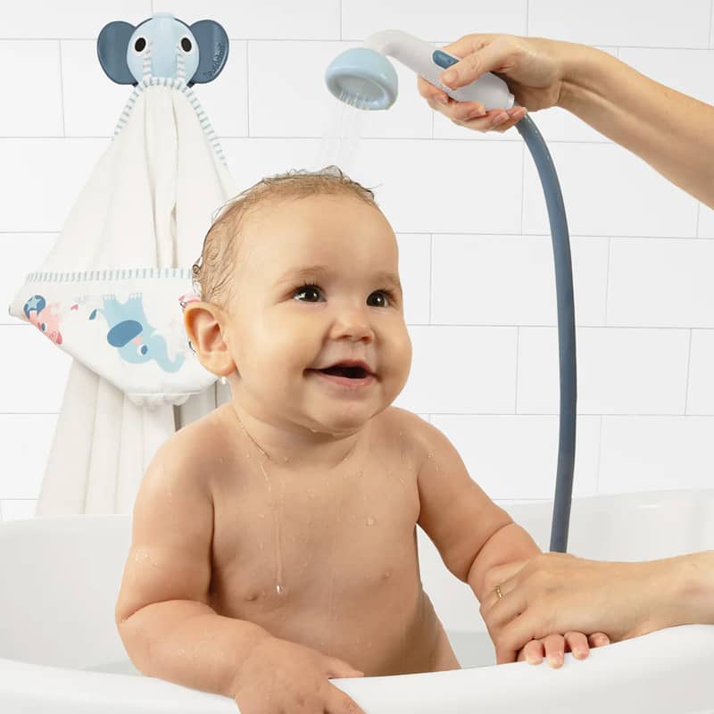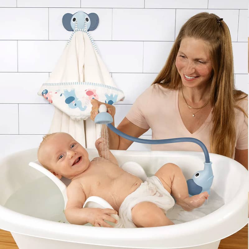 - Słonik z prysznicem – przenośny prysznic z obiegiem wody (na baterie), delikatny dla skóry dziecka