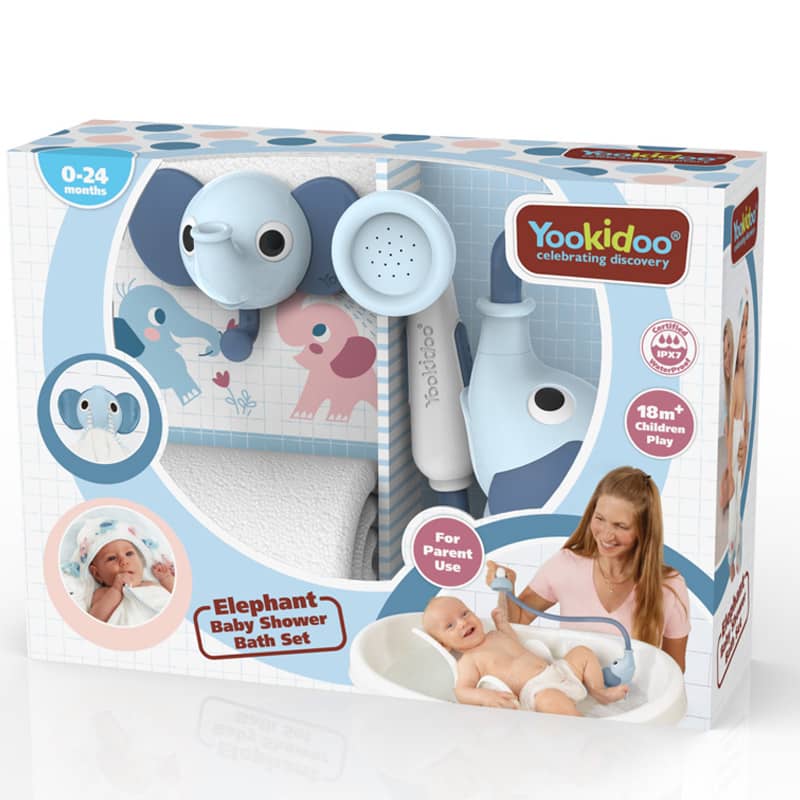 Zestaw kąpielowy prysznic słonik niebieski yookidoo