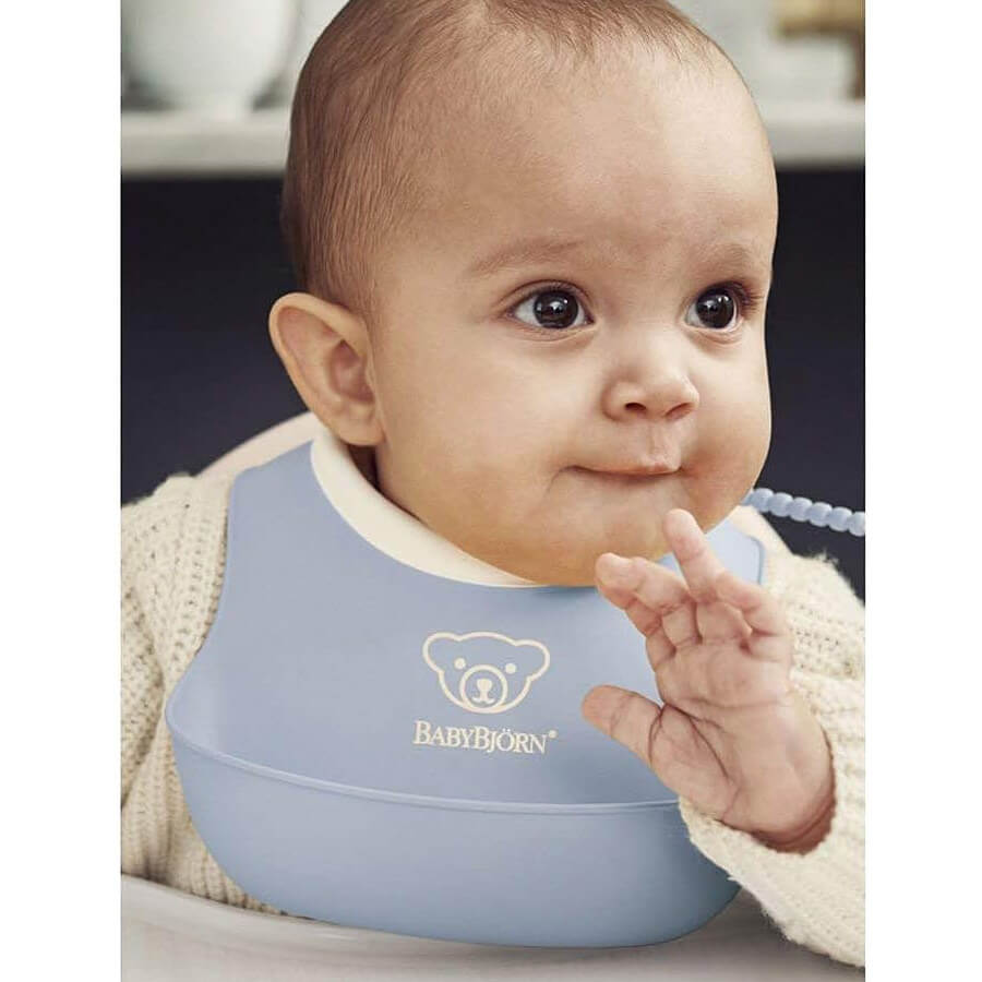- Miękki śliniaczek BABYBJÖRN wykonany jest z tworzywa dopuszczonego do kontaktu z artykułami spożywczymi zgodnie ze standardami obowiązującymi w Europie (EEC) oraz USA (FDA). Tworzywa, z których wykonano śliniaczek BABYBJÖRN nie zawierają PVC, bisfenolu A (BPA), ftalanów, kadmu, ołowiu ani chloru.